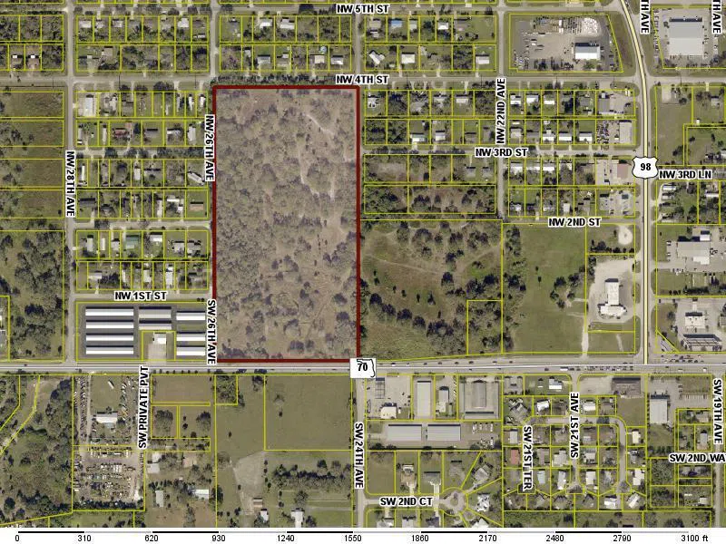 Hwy frontage of State Road 70, which runs coast to coast. Highly traveled road. There is another adjacent parcel for sale that would total approximately 28 acres combined.